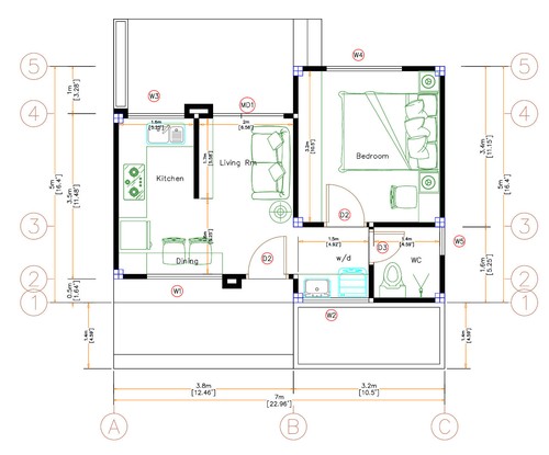 Small Budget House 7x5 Meter 23x16 Feet One Bed 1 Bath Hip Roof Pdf Plan Ebay